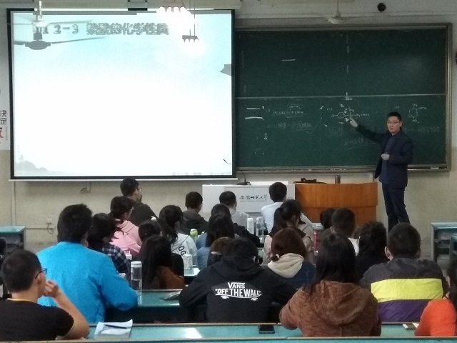 张新明老师在2010308教室为2016级材料化学1班全体同学讲授了一堂精彩的有机化学公开课,院督导组、部分专业教师及辅导员参与听课。