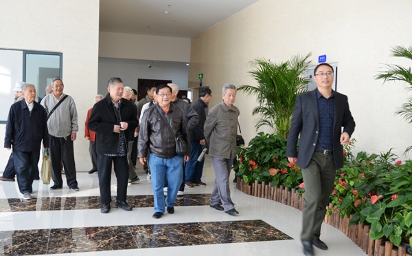 10月24日上午,载着老同志的中巴车停在花津校区新化学大楼门前,学院领导在此迎候并带领大家逐层参观了新大楼的实验室、学院荣誉室、办公室等,接着又来到学院会议室进行座谈。