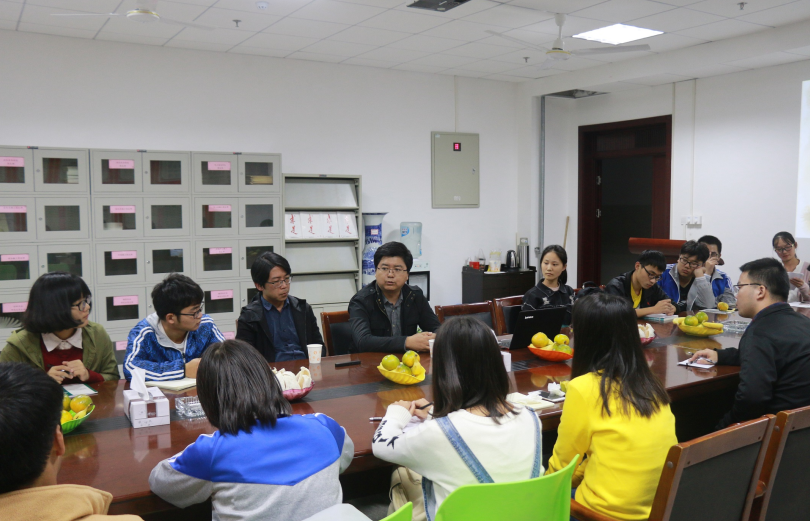 活动伊始,院党委副书记余妍霞指出了开展此次活动的目的:“希望同学们能够与老师们在专业,人生道路,未来发展等方面有更多的交流。”如果说面带微笑,沉稳,平易近人是两位老师给同学们的第一印象,在听了余妍霞书记的介绍后,老师更给学生们留下了知识渊博的印象。