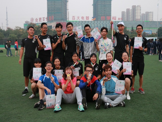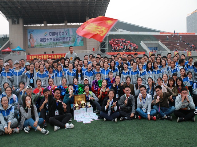 吴芯茹 王若馨)十月花津秋意渐浓,化材学子拼搏赛场。2017年10月25日至27日,安徽师范大学第46界田径运动会在花津校区北场隆重举行。为了在校运会上展示出良好的精神风貌,学院精心组织、众志成城,全力推进运动会相关工作。最终,经过三天的激烈角逐,学院获甲组男子总分第三、女子总分第六、教工组总分第三的好成绩,并获得“体育道德风尚奖”。值得一提的是,学院舞队凭借优美的舞姿斩获了全校第一的优异成绩。