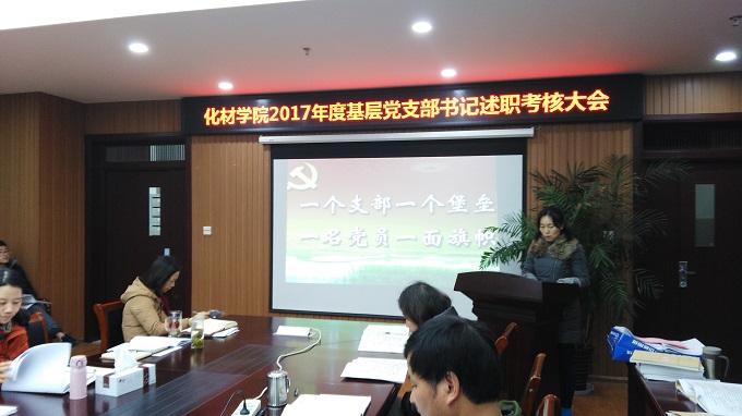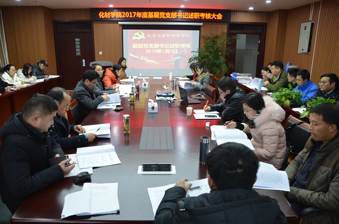 党支部书记抓党建述职评议考核工作的通知》的具体要求,并对述职评议考核大会进行了布置。17位党支部书记在开展督查调研、梳理差距不足、认真撰写述职报告的基础上,依次围绕深入学习宣传贯彻党的十九大精神,履行基层党建工作责任,推进“两学一做”学习教育常态化制度化,推进基层党组织标准化建设、提升组织能力,强化思想政治工作等方面,结合成绩清单、问题清单、整改清单及支部特色开展述职汇报,并就工作中存在的问题、加强和改进工作的思路措施、2018年党建工作的设想作出了整改承诺。党委委员对所联系支部的汇报进行分别点评,述职报告装订成册发到每个与会人员,并进行了现场测评。