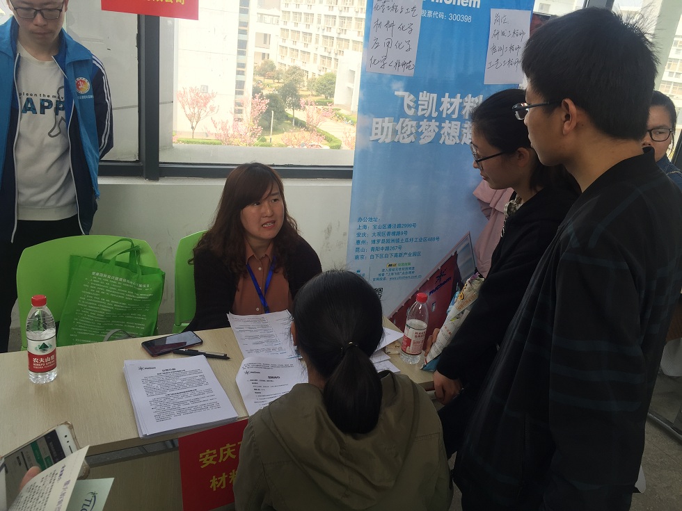 现场被肥东圣泉中学录取的张苗同学在接受记者采访时说道:“作为师范类毕业生,我在校期间不断积累教育教学知识,训练提高教学技能和水平,能顺利被用人单位录取当然非常高兴,希望自己在未来的三尺讲台上更进一步,充分展示一个师大学子的精神面貌。”南京梯尔希医药有限公司展台负责人说:“与学业成绩和工作经验相比,我们更看重毕业生的进取态度和职业精神。他们身上有活力、有闯劲、能吃苦,是公司人才可持续发展的重要支撑。”本次招聘会为用人单位和求职学生搭建了双向交流选择的良好平台,形成了用人单位、学生、学院多赢的格局,取得了圆满成功,反响热烈。