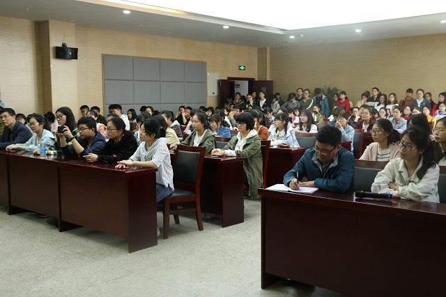 随后,陈博士以幽默风趣的语言向同学们介绍了梯尔希药物公司。他就公司各项国际标准设施规划、高端实验室、行政体系、人才理念、公司环境以及员工福利等方面作了简单介绍,并对师大学子前往就业表示了欢迎。
