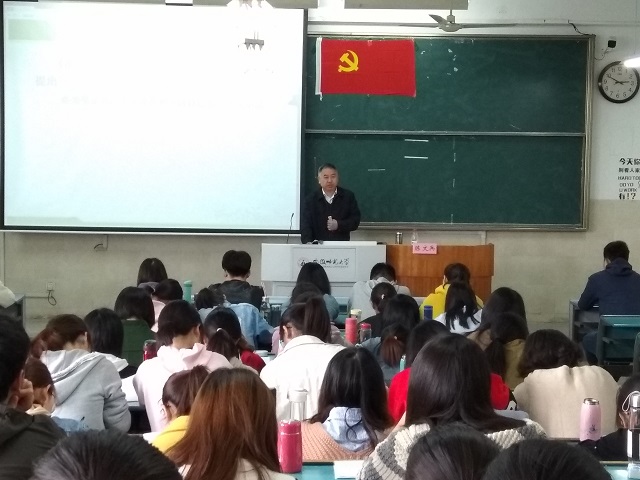 第五期学生党员培训班在行知楼2010302教室举行了“党风党纪专题教育”培训,校纪委副书记陈文兵受邀主讲,学员全体学生党员参与了本次培训会,会议由本期培训办班主任王国良主持。