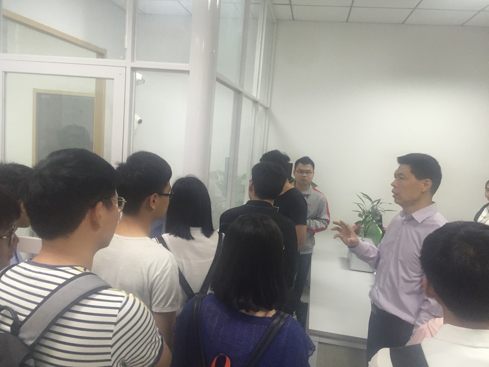 本次见习活动行程一天,由学院团委副书记蒋建伟老师带队。上午10时,见习师生准时到达梯尔希(南京)医药研发公司。梯尔希(南京)医药研发公司总经理崔希林博士热情接待了来访师生。在会议室举行了简短的校企见面会,崔博士以幽默风趣的语言向同学们介绍了梯尔希医药研发公司的规模、定位和生产研发流程;人力资源经理方久珍女士向同学们详细介绍了来公司实习或就业的福利政策、薪资待遇和发展前景;公司副总经理刘春先生就公司各项国际标准设施规划、高端实验室、行政体系、人才理念以及公司环境等方面作了简单介绍,并对师大学子前往公司见习、实习和就业表示了欢迎。见面会上,部门经理还分别介绍了相应部门的工作职责及工作流程,同学们也就相关方面提出问题,交流氛围良好。在参观见习过程中,36名同学被分为两组进行。我们依次参观了有机合成实验室、分析测量实验室和核磁共振等大型仪器实验室,在参观到有机合成实验室时,崔博士向同学们介绍了公司通风橱的通风速率均大于0.7米每秒,达到国际标准要求。公司先进的仪器设备、规范的操作流程、人性化的发展理念都是深深印入了见习同学的脑海中,充分认识到了学校专业学习与企业专业生产之间的区别和差异,纷纷表示要进一步学习专业,夯实基础,练就过硬专业技能,未来更好的满足企业用人要求,适应企业生产环境。