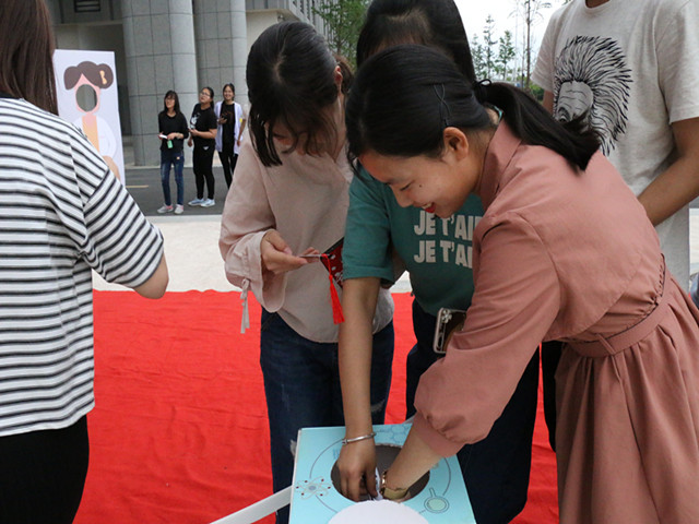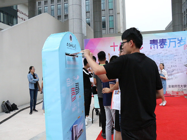 理科大楼楼下,学院精心组织了一场迈入“成长之门”的成人礼仪式。同学们依次迈进“成长之门”,走上红毯。青春靓丽的“成长之门”寓意着门外是成人前的懵懂无知,门内是成人后的责任担当,鲜红的红毯寓意着祝福着他们走向一条康庄大道。红毯两侧为同学们准备了一次“对话”,一份“礼物”。对话成年后的自己,同学们将事先准备好的“给成年后自己的一封信”庄严的投入信箱,每一封信都承载着学生的青春梦想、目标蓝图。仪式以寄信的方式引导学生正视成年,审视自我,规划未来。来自学院领导老师们的一份礼物,学院特意定制了印有卡通色情