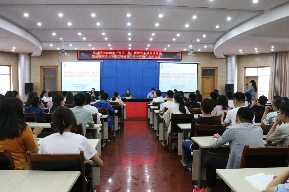 团委在会议中心第三报告厅举行了2018年“青马工程”团学骨干培训开班暨爱校荣校大学生文明修身“双十行动”启动仪式,学院党委副书记余妍霞,学院团委副书记、团校班主任蒋建伟,2016级辅导员朱姗,2017级辅导员王雨兵,团学骨干培训班学员,学生组织学生干部代表,各年级班长团支书参加了本次活动。活动由学院团委副书记蒋建伟老师主持。