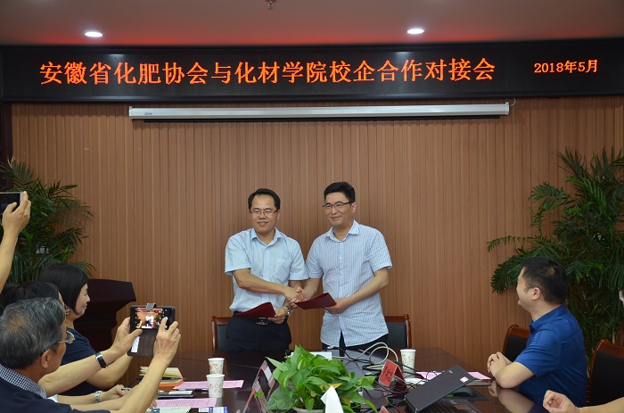 分别与安徽化肥工业协会、安徽省金正大生物科技公司、安徽省华谊化工公司签订了校企合作协议,并向与会企业家颁发就业创业指导师聘书。