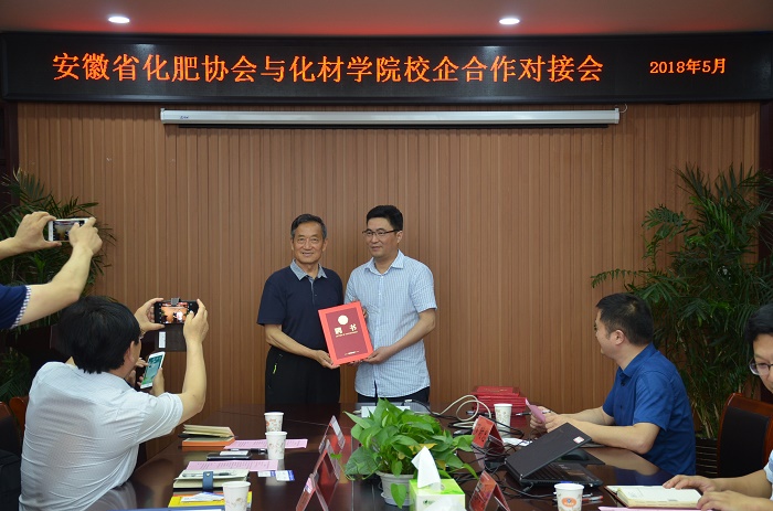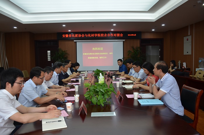 校企合作对接会理科实训大楼702会议室举行。安徽省化肥工业协会名誉理事长夏英彪、安徽省化肥工业协会理事长杨青元、安徽金正大生物科技公司总经理程建飞、安徽新江淮投资有限公司董事长秦光、安徽喜洋洋现代农业科技公司董事长王宜坤、安徽中诺公司总经理王美玲、安徽泰莱保温科技公司董事长龙宏喜出席会议,卡通色情