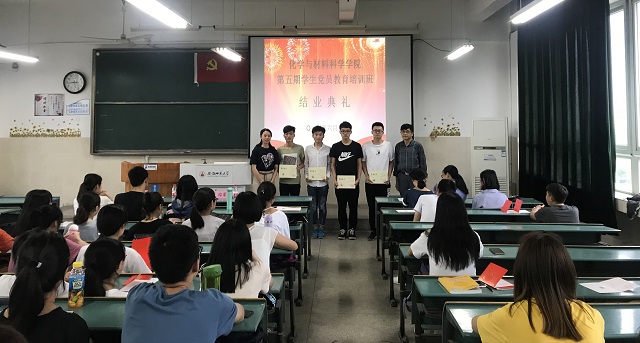 下午5点40分,伴随着庄严地国歌,本期培训班结业典礼正式开始。经学院党委考虑,王国良宣读由宁云飞、栾润泽、曹昌盛、闫绍兵4位同学荣获优秀学员荣誉称号,闫蒙钢老师为同学们颁发了获奖证书,并与余妍霞书记一同和优秀学员们合影留念。随后,余书记向全体学员们就“如何做好一名学生党员”做了指导讲话。讲话中余书记指出,党员的学习教育不仅仅只限于课堂教学,在课程以外更为广阔的生活中,广大党员同志们更要时刻严格要求自己,不但要在课堂,更要在实践中历练自己,提升自己。她强调,一位优秀的学生党员首先要树立远大的理想,志存高远;其次要不忘初心,做一名有情怀的学生党员;要主动示范,成为一名做表率的学生党员。