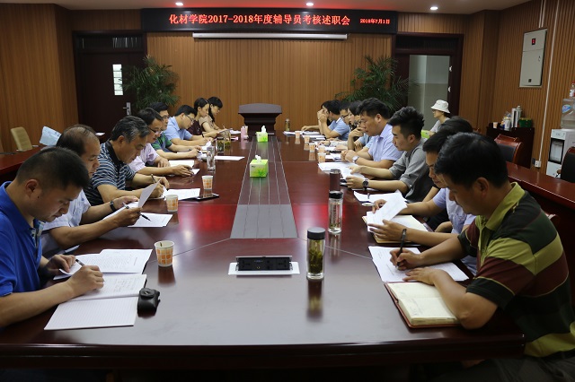 在化学楼702会议室举行了2017—2018学年辅导员述职考核会,学院班子全体成员、各系主任及全体专兼职辅导员参加会议。