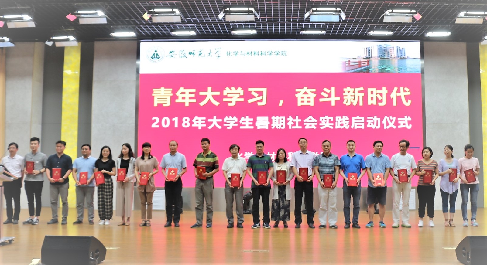 2018年大学生暑期社会实践活动启动仪式在理科大楼报告厅隆重举行。校学工部部长、学生处处长刘晓宇,校团委副书记汪凯,思政理论指导教师刘桂荣,学院党政领导班子、社会实践领导组成员,学院各系主任盛恩宏、阚显文、王正华、罗时忠,社会实践指导教师代表,校院班级实践团队队长及560余名社会实践志愿者参加了启动仪式。仪式由院团委副书记蒋建伟主持。