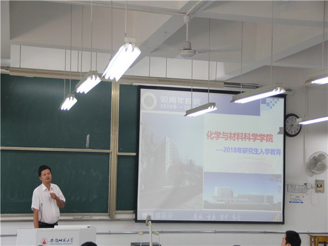 2018级研究生生入学与安全教育大会在7号教学楼召开,分管科研的副院长周双六,研究生秘书袁青兵,2018级研究生辅导员信欣及全体2018级硕士研究生参加会议。会议由袁青兵主持,会上周双六做新生入学教育报告,他介绍了我院的发展与现状、各专业的基本概况和研究生培养管理等情况,并从各个方面严格强调实验室安全的重要性,同时对2018级研究生提出了殷切希望和要求。信欣对研究生接下来的工作进行了安排。袁青兵在新生班会中对2018级新生的到来表示热烈的欢迎,详细解读各学位点培养状况,并希望新同学可以合理规划研究生生活,不忘初心。