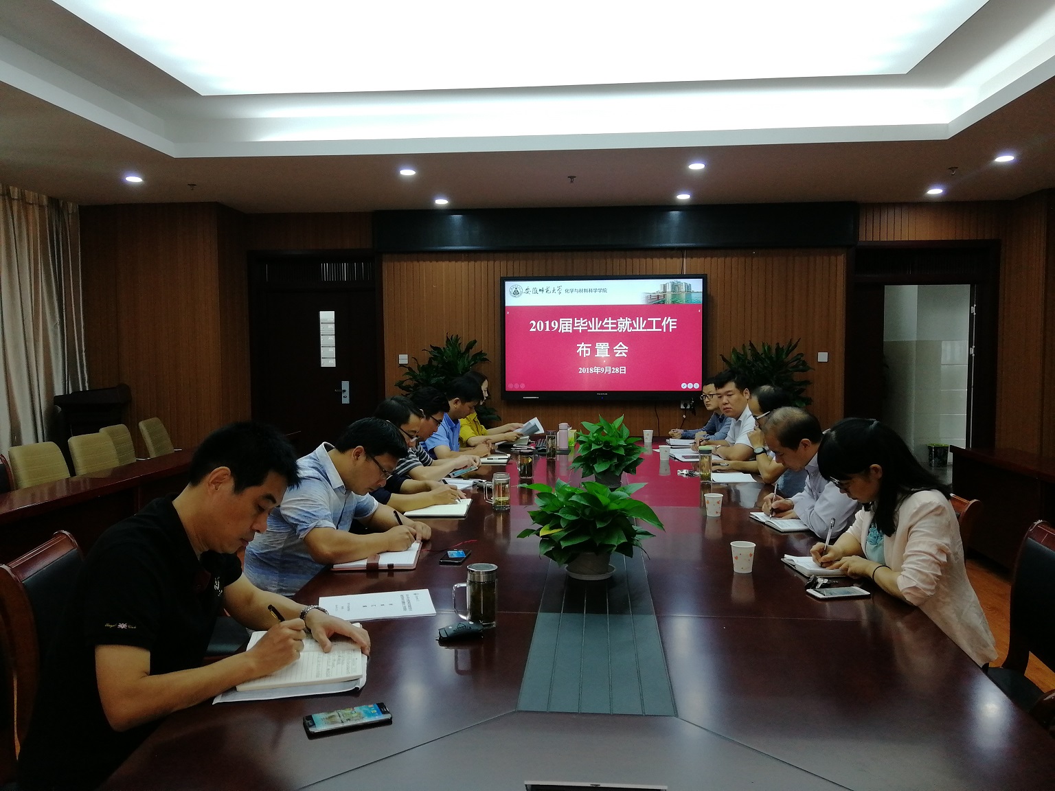 2019届就业工作方案,并就下一阶段就业工作的重点任务进行了布置。与会人员对如何促进不同专业毕业生高质量就业进行了充分的讨论和交流。学院党委书记汪俊武在讲话中指出,要充分发挥专业教师在推进毕业生就业中的积极作用,要深入挖掘校企合作的就业资源,要不断拓宽毕业生就业渠道,要全力为学生求职提供支持与指导,努力形成全院联动全员推进毕业生就业的工作局面。