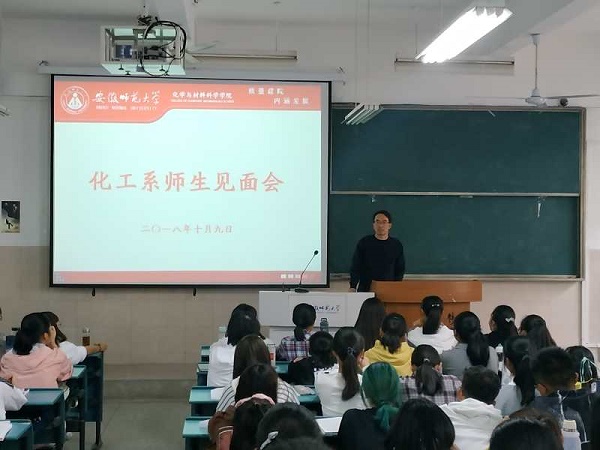 师生见面会,坚定专业思想。10月9日下午,化学工程与工艺系举行2018级新生师生见面会。化工系专业教师出席了本次见面会,与同学们亲切交流,给予了同学们众多恳切的建议。同学们全神贯注,聆听教诲。