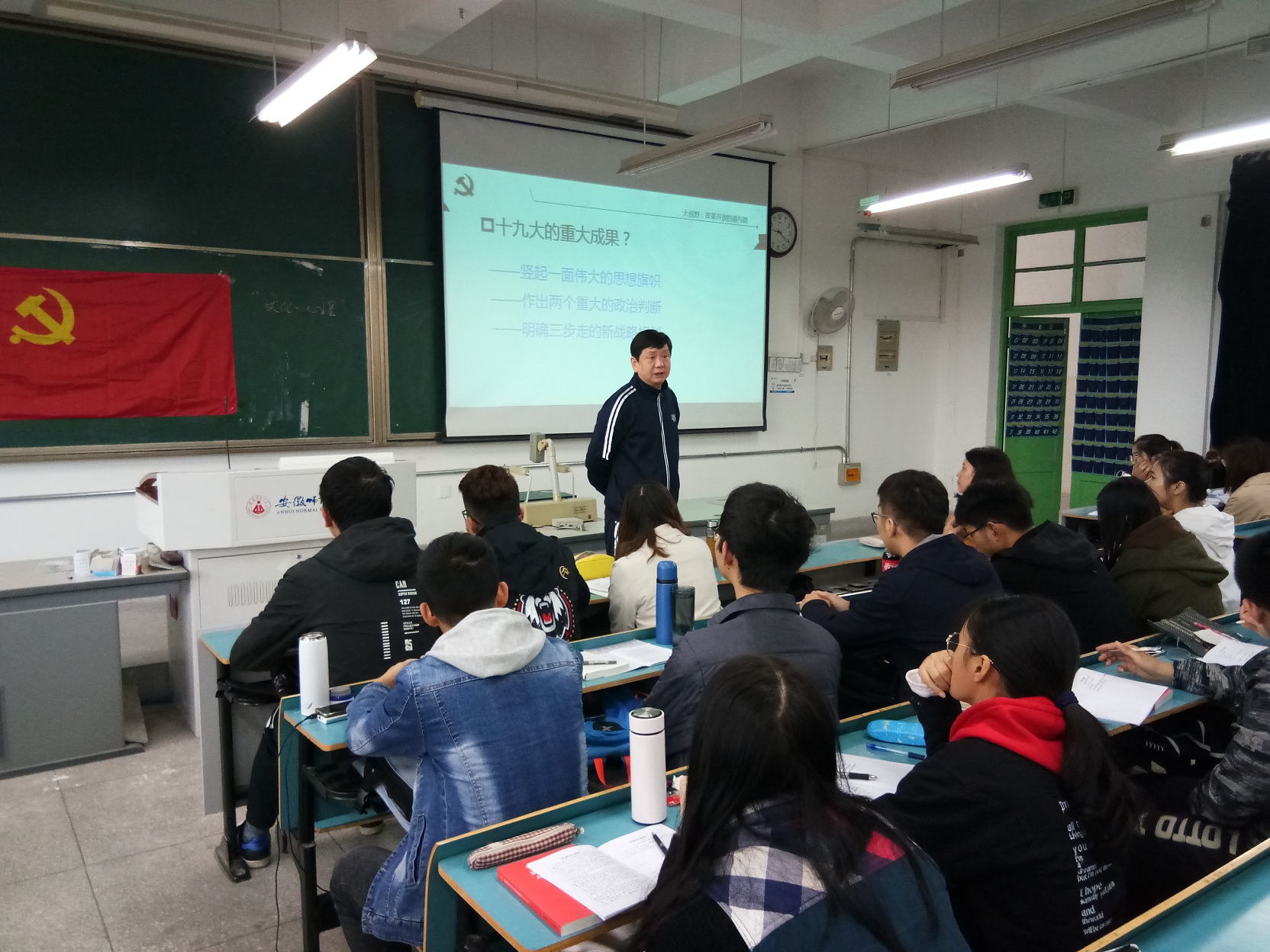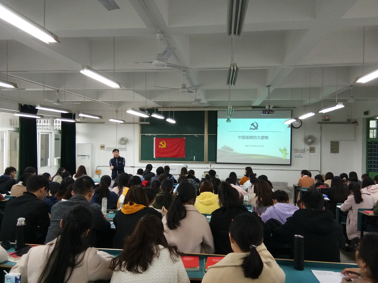 入党积极分子培训班于行知楼2070201室如期开课。校党委宣传部部长胡靖应邀为党校学员授课,化材院党委副书记余姸霞及全体学员聆听了党课报告。