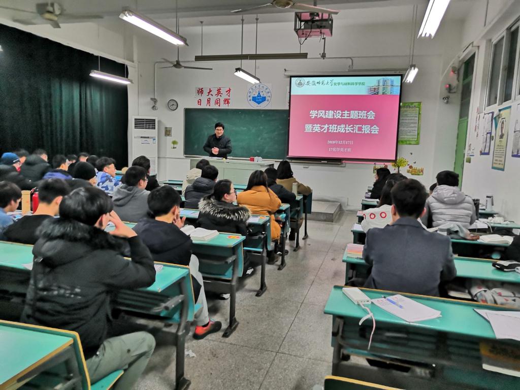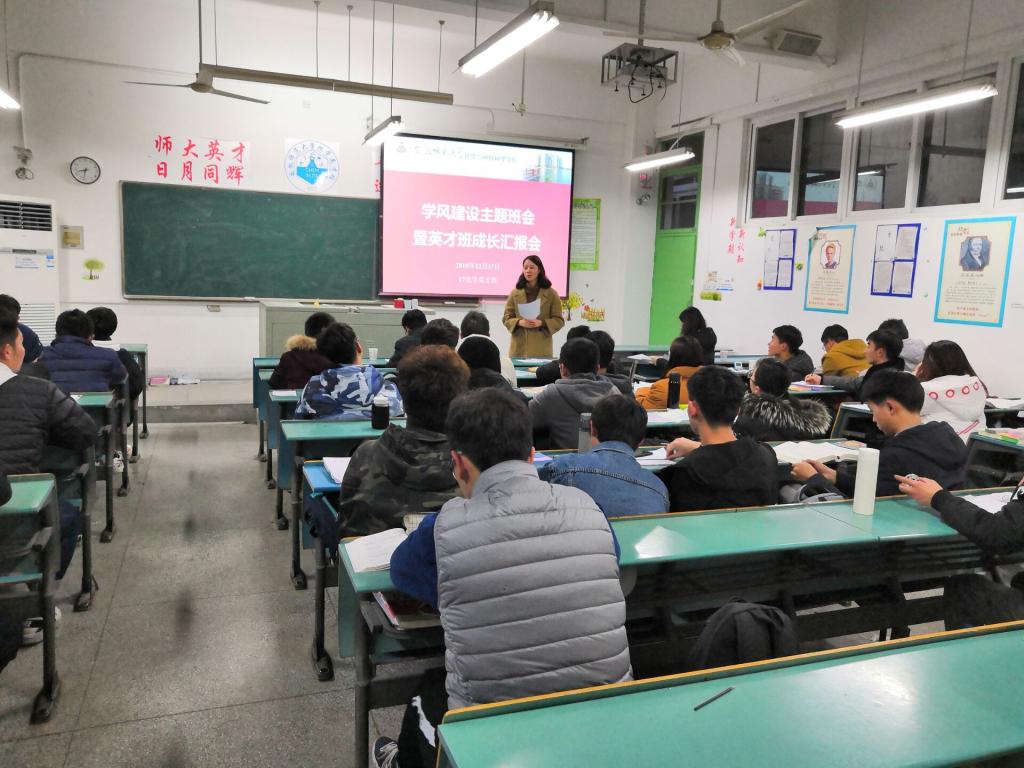 本网讯(卡通色情 )为进一步强化学院学风建设,加强思想引领,近日,卡通色情 院长高峰走进17级化学非师范班主题班会,与学生共同探讨学风建设,聆听学生成长汇报。学院党委副书记余妍霞参加了班会。辅导员荣菁秋主持了班会。