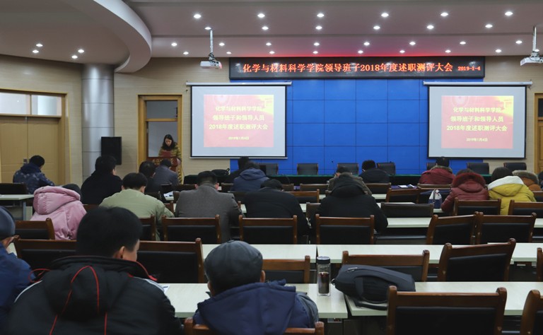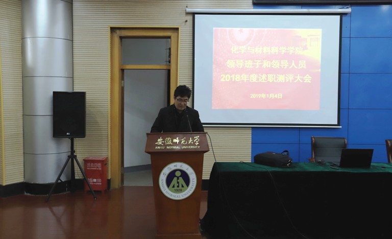举行2018年度领导班子和领导人员述职评测大会及二级单位述职考核大会,全体教职工参加大会,会议由学院党委书记汪俊武主持。