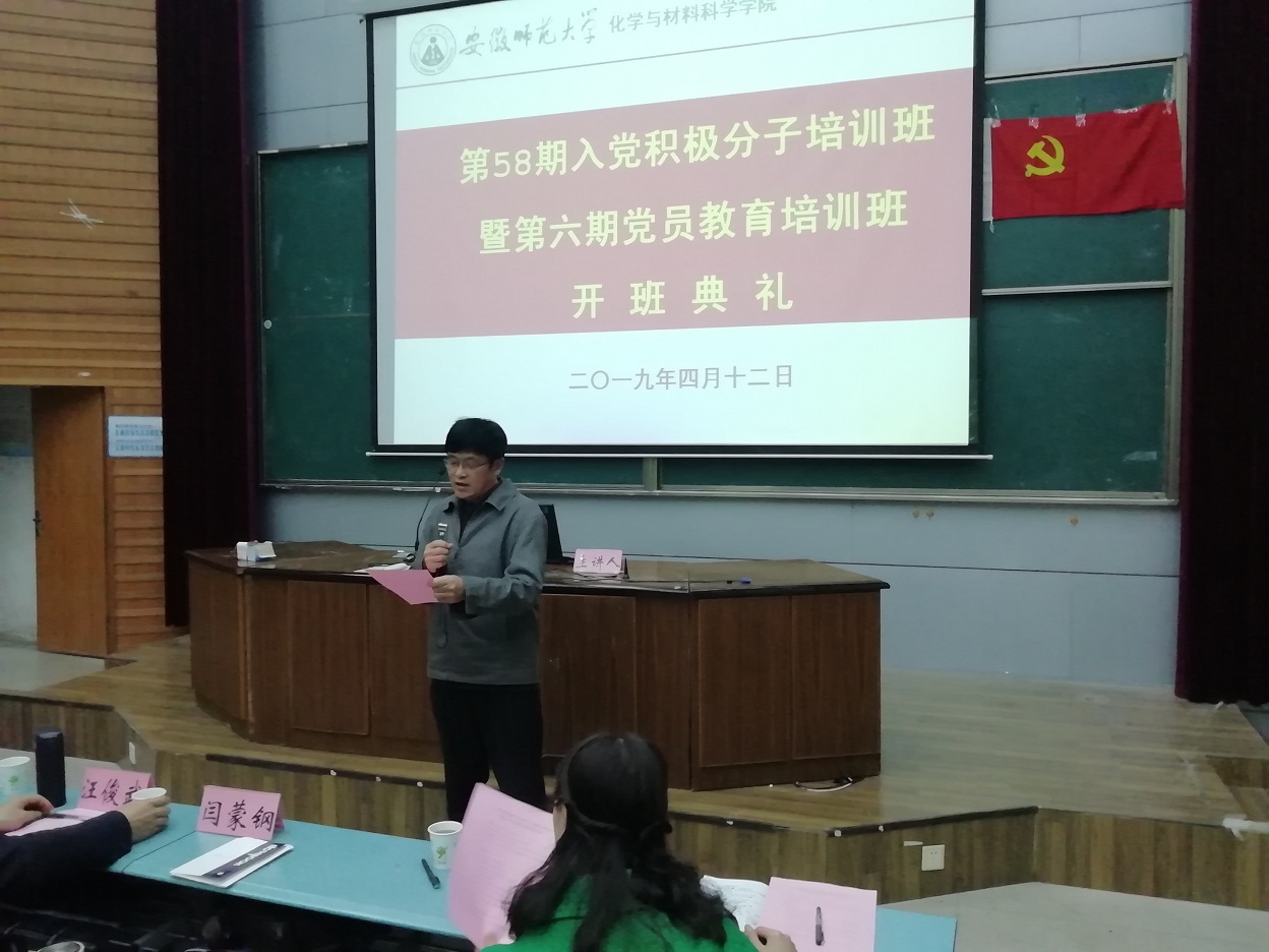 开班典礼在庄严雄壮的国歌中拉开了帷幕。首先,由班主任陶勇分别宣读入党积极分子培训班及党员教育培训班班委任命及班级管理制度;紧接着,分党校指导老师闫蒙钢老师宣读本期党校工作安排。