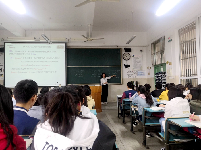 王广凤老师精心细致的备课、精彩纷呈的分析、融洽和谐的师生对话、耐心细致的聆听与引导,都给与课师生留下了深刻的印象,并获得旁听老师的一致肯定与赞赏。通过此次学习,同学们对于教学内容的掌握也得到了强化,深刻了解到分析化学的学习不仅仅局限于书本中的计算,更重要的是一种思维方式的训练和提升,为其今后在分析化学的学习点亮明灯。
