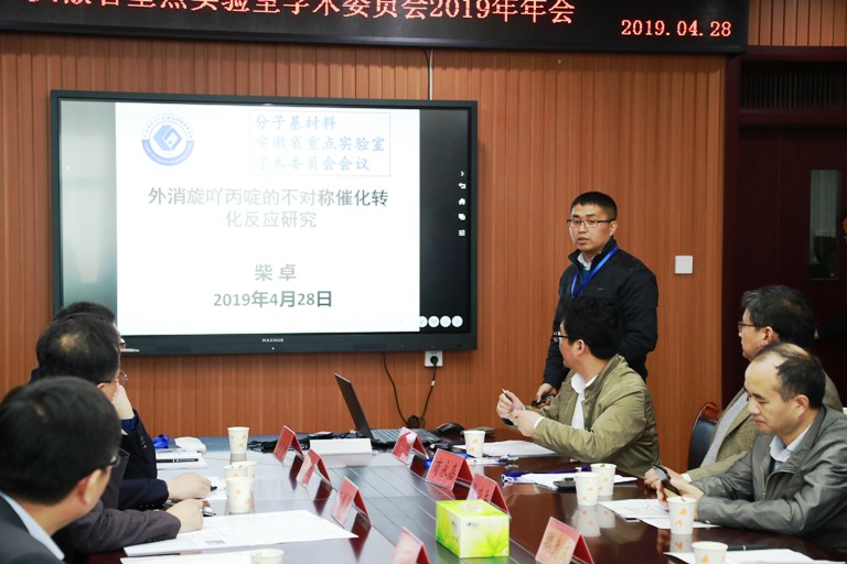 学术委员会主任李亚栋院士主持了学术年会。高峰院长作分子基材料安徽省重点实验室2018年度工作进展报告,围绕重点实验室研究方向汇报分子基材料实验室2018年在队伍建设、科学研究、人才培养、实验室运行管理情况。夏云生教授、柴卓教授、毛俊杰教授分别作了研究进展报告。委员们充分肯定了实验室一年来来在各方面取得的成绩,认为实验室建设定位清晰,整体实力明显提升,研究特色较突出,建设举措有力,发展思路可行。建议学校加大对实验室的投入,加强人才引进力度,进一步凝练研究方向,坚持特色研究和原创性研究,以期产出更多高显示度成果。
