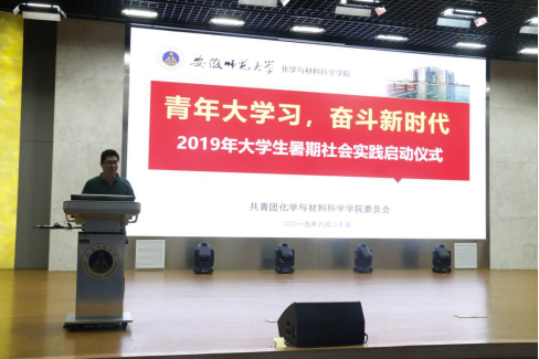 一直高度重视暑期社会实践,今年学院的实践内容紧跟时代步伐并结合专业特色,共分为四大主题团队,即五四先锋团、专业见习团、环保宣教团、爱心服务团,分别投身红色调研、爱心支教、科普宣讲等多个实践活动。全院共组建6支校级重点团队、23支院级重点团队,近500多名化材学子。同时,本次启动仪式让同学们在多方面、多角度对暑期社会实践有了一个较为深刻全面的了解,也大大鼓舞了参与本次活动同学,书写了2019年暑期社会实践活动新篇章的第一页。