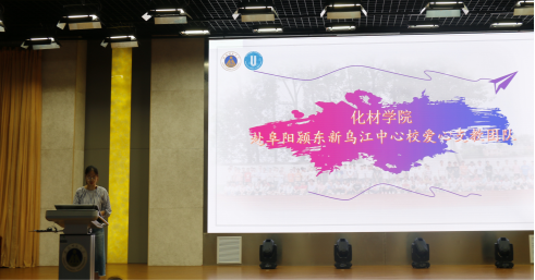 会中,往届优秀队长代表2016级化学师范专业王慧同学从三个方面分享了她对暑期社会实践的感受。她用问缘由、问初心;问敢勇、问盛放;问深情、无问西东这三个方面概括了自己参加两年暑期社会实践活动的经历,丰富而富有感染力的分享引起了与会志愿者们的掌声不断。