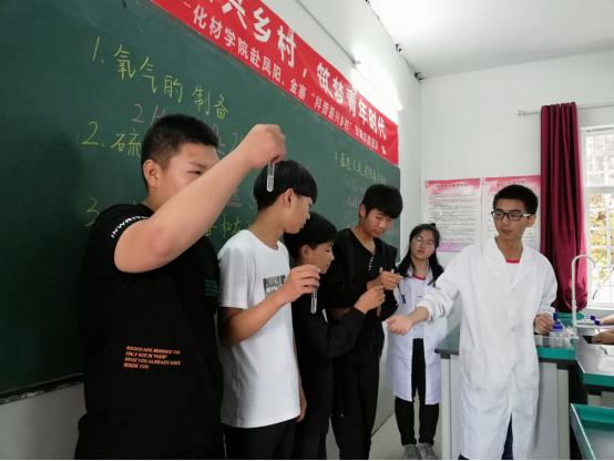 在城市化的大背景下,农村年轻人口流失严重,与之相伴的是乡村学校入学儿童人数的减少。但是出乎全队成员意料之外的是,位于小岗村镇中心的小岗村学校基础设施建设良好,不仅生源充足,设备齐全,而且整个学校让学生们享受到高水平的素质教育。学校从以前老师资源不足到现在配备齐全的国家在编教师。在与学校骨干教师交谈的过程中,团队成员各抒己见,分享各自在学习上的心得和经验。在走访小岗村中学过程中,团队成员了解到,学校在十年前面临着生源大幅减少的问题,但小岗村政府深知青年才是村里未来的希望,出台相关政策激发了青年教师来到小岗中学教书育人的热情,大大提高了当地教育水平,并在今年取得新的突破——中考成绩取得凤阳县中学全县第三!为了进一步激发同学学习知识的热情,支队成员给同学们带来了一场别开生面的化学科普小课堂,在他们幼小的心灵里埋下了希望的种子!