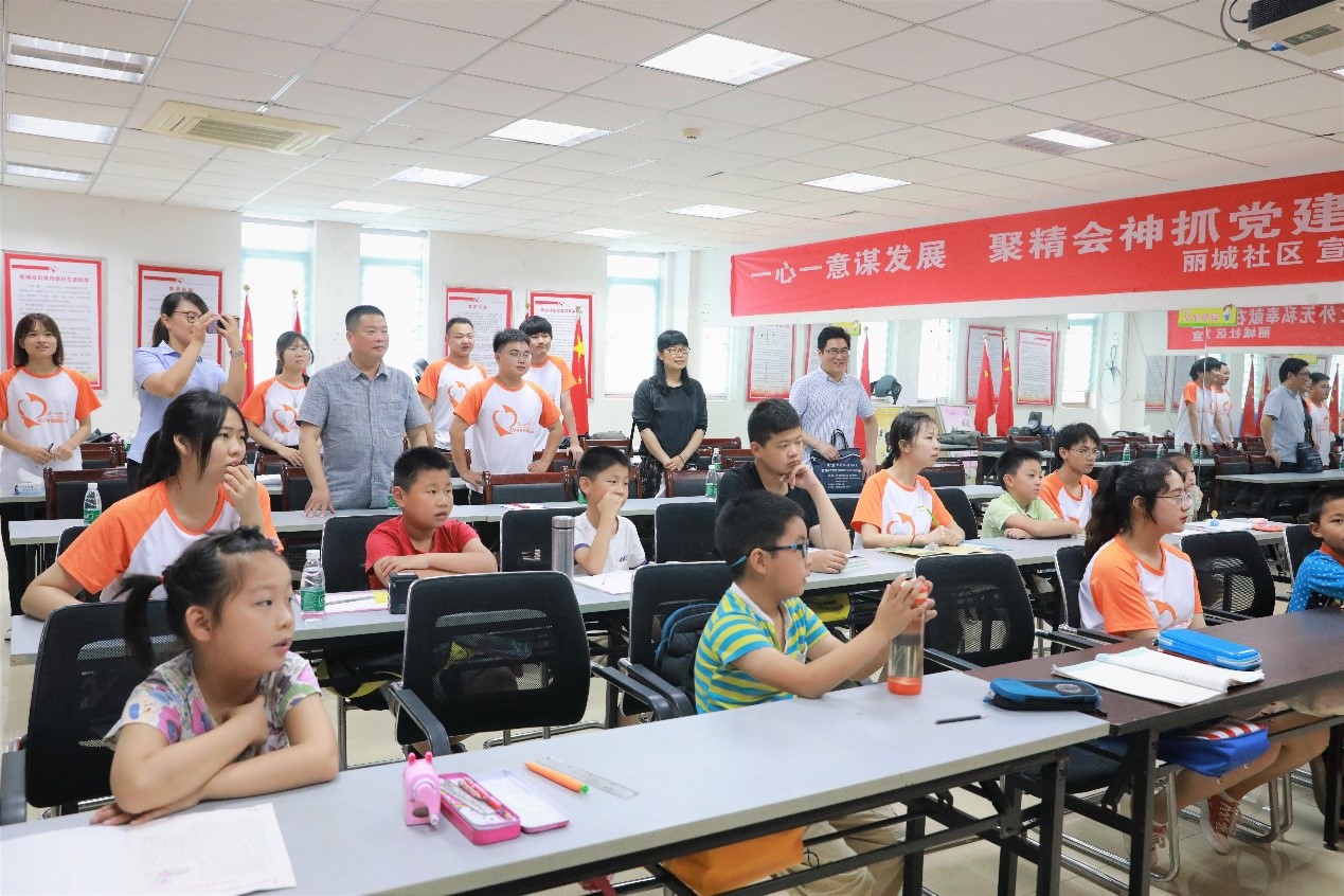 仪式由指导老师蒋建伟主持,实践团队队长卜伟彬汇报了这次暑期社会实践的主要成果以及感悟,到目前为止,团队按原定课表进行相关活动,课业辅导之余进行了趣味活动与PPT宣讲共计24次。为了增强孩子们的爱国意识,团队进行了爱国教育宣讲,为了防止暑期儿童溺水事故的发生,在社区的帮助下进行了防溺水主题宣讲,其余在与其他团队合作过程中进行了环境保护等方面的PPT宣讲。队长表示这次暑期实践活动我们也收获了爱与温暖,这样可爱的学生,这样渺小的我们,怀着同样的赤诚之心,在这个梦开始的地方,互相温暖。队员郭健和卞兴康也分享了此次活动的收获与意义。接下来丽城社区安书记对大学生志愿者的到来表示感谢,并向与会人员介绍了丽城社区的资源环境情况,丽城社区与卡通色情
