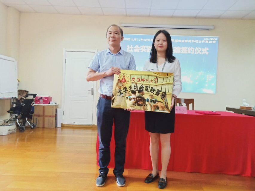 为了帮助大学生提高就业创业意识,加强校企合作,拉近学生和企业之间的距离,帮助青年大学生在创业领域实现自我的能力提升。团队与芜湖佳宏新材料有限公司公司和芜湖资城孵化管理有限公司共建大学生社会实践基地。校企合作的加强,社会实践基地的建设将成为师大学子自主学习和实践的新窗口,实现梦想的新平台。