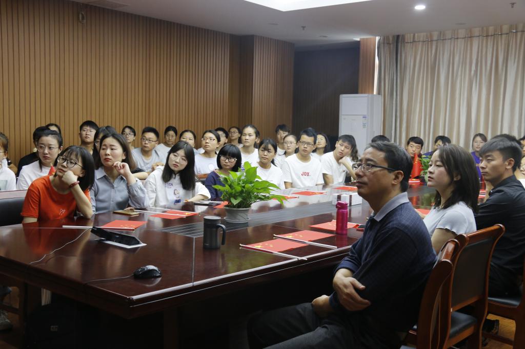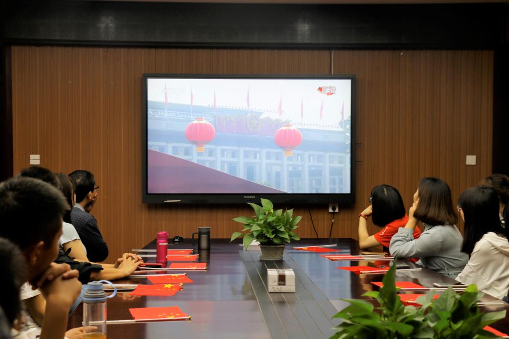 积极组织师生收听收看大会盛况,热烈庆祝中华人民共和国成立70周年。院党委书记汪俊武、各年级辅导员与学生代表一起化材楼702集中观看阅兵仪式现场直播。