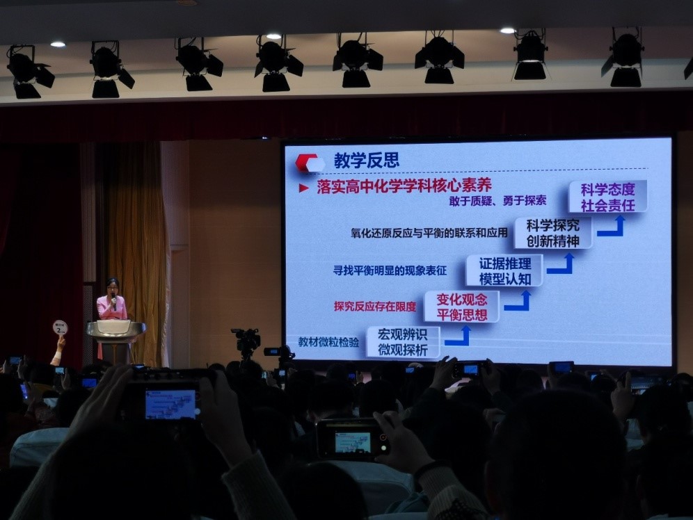 对于刚接触化学课堂设计与实践的大三师范生来说,优质课评选的观摩学习是“汲取养分”的过程。来自安徽省不同市区、不同学校的八位优秀高中化学教师带来的实验说课展示,八位优秀教师均从教学评价目标、学情教材分析、教学过程设计理念、教学实施过程、教学评价等方面开展了说课,实验探究过程中充分体现以学生为主体、教师为主导,启发学生自主设计实验,层层递进,并使用数字化实验仪器以图表形式呈现出探究结果,呈现了缤纷多彩的课堂。2019年安徽省高中化学优质课评选说课精彩纷呈,各有千秋,师范生不停地在笔记本上记录每节课的借鉴点,不时皱眉思考,不时鼓掌叫好。