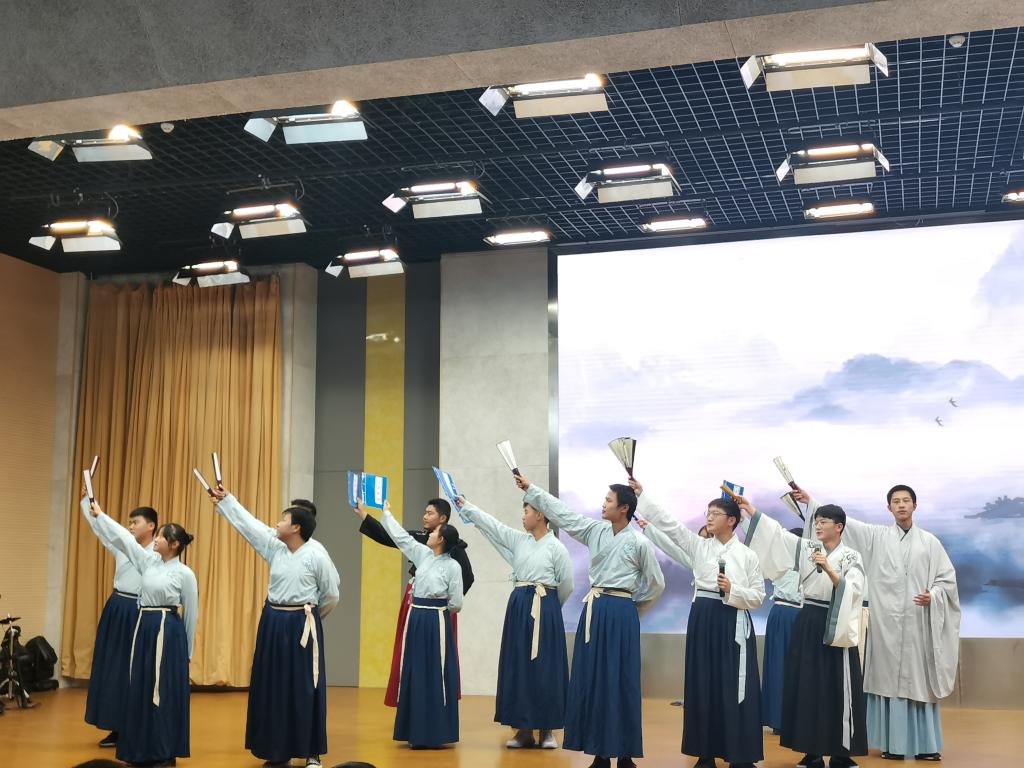 激情四溢的舞蹈之后,19级化学类一班和二班的同学们精心准备的朗诵节目《青春对话》粉墨登场,铿锵有力的朗诵声展示出化材学子如冉冉升起的朝阳般蓬勃的青春。青春如江海,滚滚向前,不可阻挡,19级新生用自己的热情展现出他们在师大怒放、飞扬的青春。大艺团器乐队带来的歌曲串烧《追梦赤子心+茉莉花》巧妙地将西洋乐与传统民乐的结合起来,让现场观众感受到浓浓的赤子之心。在追梦的道路上,挥洒青春的汗水,伴着茉莉的芬芳,一路花开绽放。背上行囊,仰望星空,有星光的陪伴,逐梦之旅便不再孤独。伴随着大合唱《我有一个装满星星的口袋》,晚会进入尾声,挥手告别2019,翘首以盼2020。