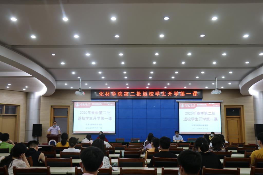 6月1日晚,学院分批次地召开第二批返校学生开学第一课。院党委书记汪俊武、院长高峰、党委副书记余妍霞、副院长张小俊、各系系主任和返校同学共同参加了返校第一课。会上,学院领导老师就国家和学校的相关防控管理规定以及学生返校的管理制度和要求向全体返校学生详细地进行了解读。汪俊武特别强调要求全体同学提高思想认识,遵守规章制度,积极调整心态,严守纪律规矩,确保返校期间身体健康。