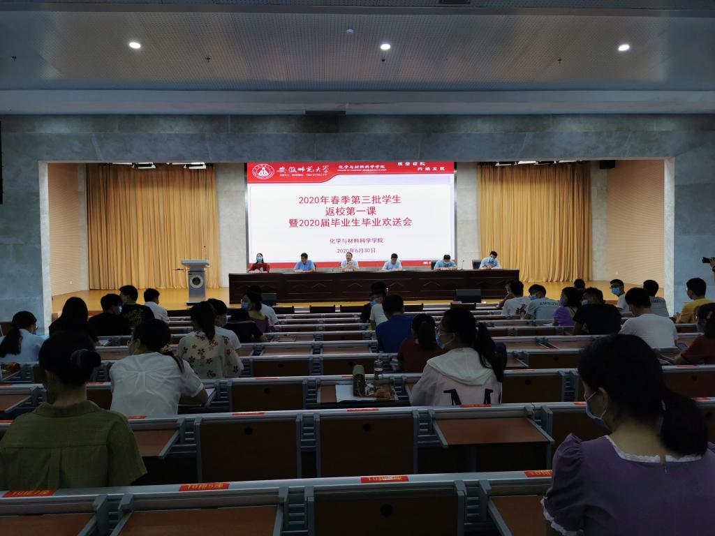 举行第三批学生返校第一课暨2020届毕业生毕业欢送会,学院党政班子成员、各系主任、毕业班辅导员和返校毕业生参加会议。