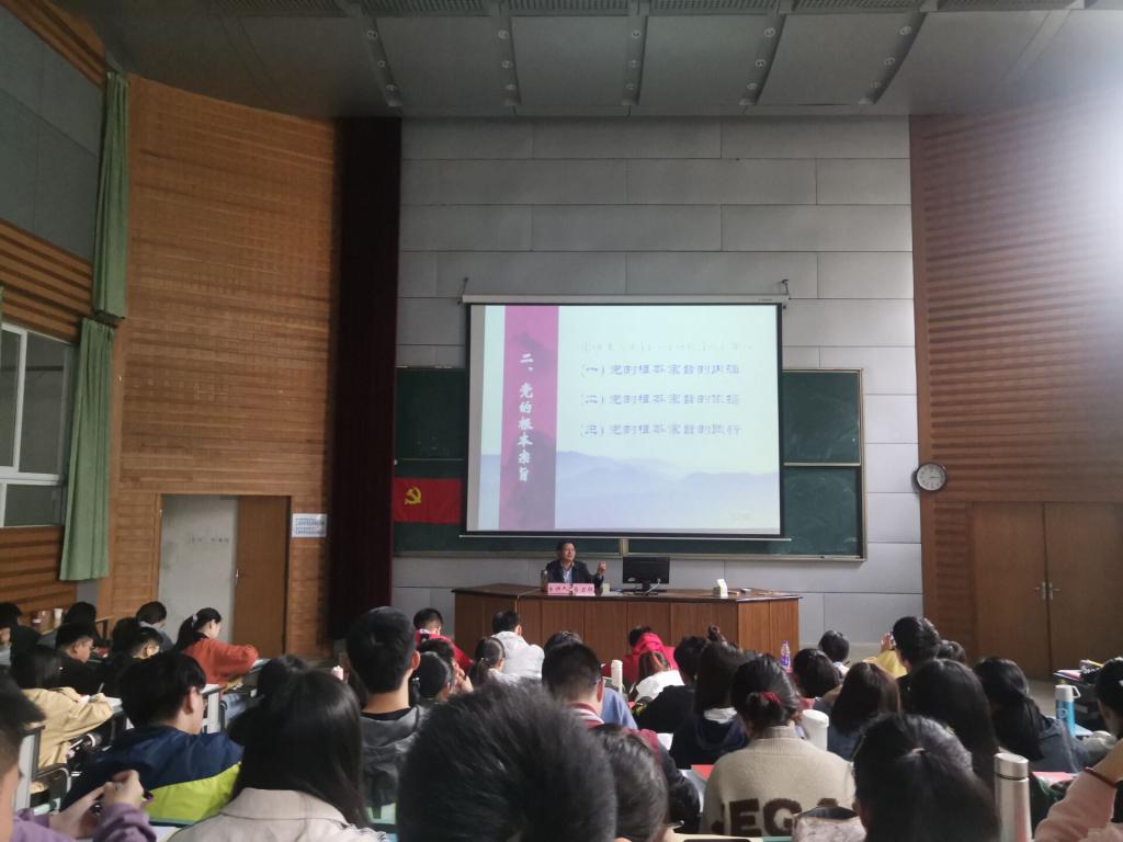 分党校第27期入党积极分子培训班理论课第二讲,在行知楼2010105教室如期举行。校资产与实验室管理处台启权处长应邀为本院入党积极分子培训班学员进行了“党的根本宗旨”专题授课。