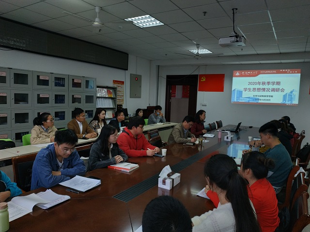 于10月28日下午召开2020年秋季学期学生思想情况调研会,学院党委书记汪俊武,院长高峰,党委副书记余妍霞,辅导员以及学院各年级各专业学生代表参加此次会议。