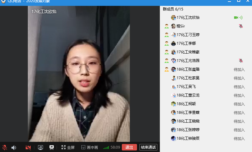本网讯(化工系本科生党支部 李娜)为提升党员发展质量,规范发展对象推选程序,化工系本科生党支部根据所拟定的《本科生党支部发展对象“评分制”实施细则》,11月2日,通过线上方式,开展发展对象的推选。参加本次会议的有支部委员、正式党员以及拟发展对象,本次会议由支部书记程紫丹主持。