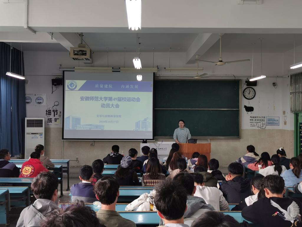 第49届校运会动员大会在行知楼2010302教室准时召开,本次会议由学院团委书记陶勇老师及学生会指导老师陈静共同主持。会上,陶勇老师就此次校运会运动员赛前训练及积分奖励补贴的发放条例进行了详细说明,鼓励运动员积极训练,认真备战。随后,陈静老师就运动会的相关注意事项做了具体说明,提醒各位运动员们要注意赛前赛中个人安全防护,友谊第一比赛第二。同为即将代表卡通色情