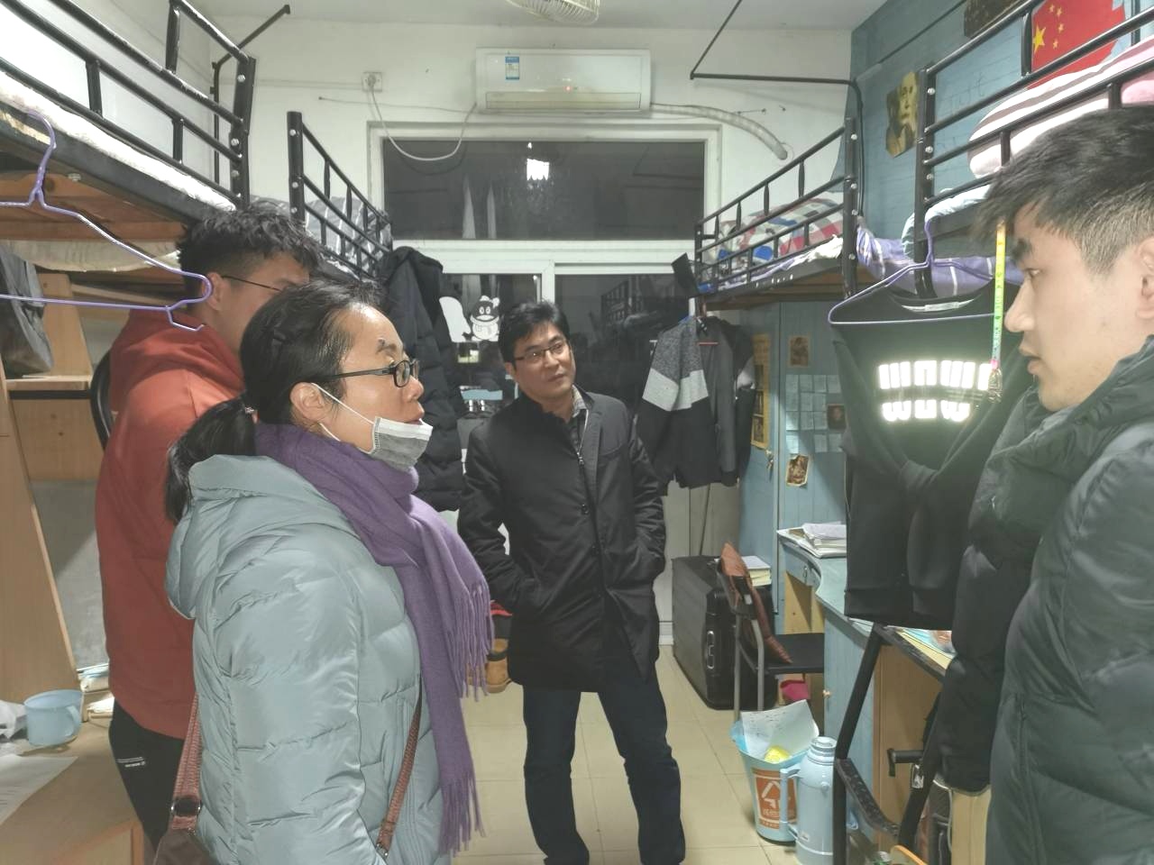 组织学生宿舍冬季安全大检查,学院党委领导班子、各系主任、全体专兼职辅导员深入学生宿舍,对宿舍安全隐患、寝室卫生进行专项检查,走访每一间学生宿舍,检查是否存在使用大功率电器、违规电器、不合格电器及违规用电的行为,检查是否存在杂物堆积等安全隐患。通过检查,学生宿舍整体状况良好,对于宿舍卫生差、有安全隐患的情况,及时督导学生整改。同时,领导老师也深入宿舍,关心学生学习生活,和考研备战的学生交谈,鼓励学生放平心态,坚持到底;嘱咐即将迎来期末考试的学生,认真复习,诚信考试。