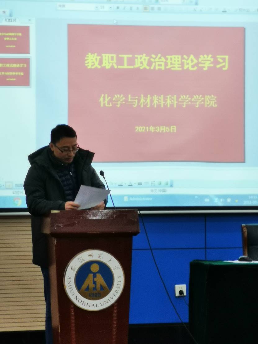 召开新学期首次教职工大会,集中学习全国两会精神,学习习近平总书记在党史学习教育动员大会上的重要讲话精神。学院领导班子成员及全体教职工参加了会议,会议由学院党委书记汪俊武主持。