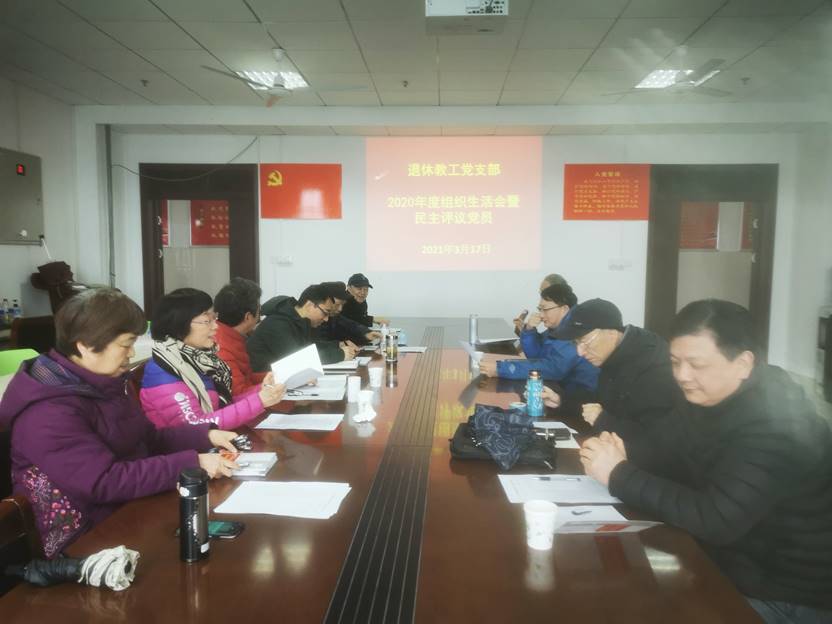 退休教工党支部在礼勤楼707党员活动室召开组织生活会暨民主评议党员大会,部分退休教工党员参加了会议,学院党委书记汪俊武出席会议并指导,会议由党支部书记熊言林主持。