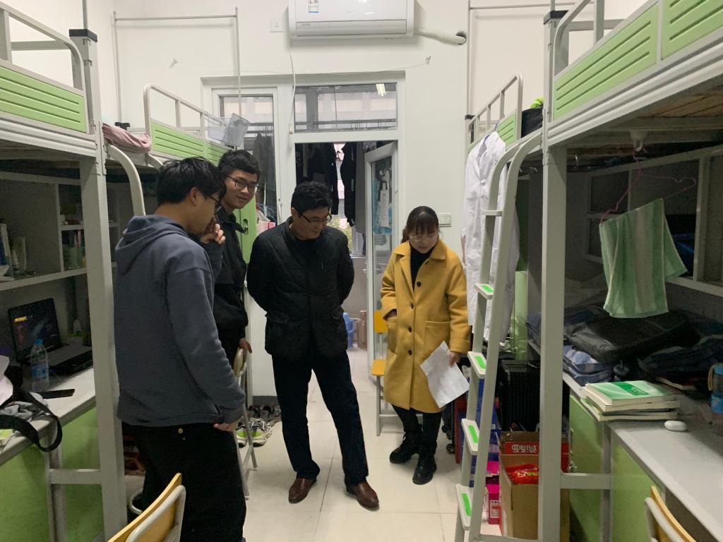 开展春季学生宿舍安全卫生检查工作,学院领导班子带领全体专兼职辅导员分组走进学生宿舍,通过宿舍走访、安全卫生检查等方式,进一步了解新学期学生思想动态和学生在宿舍学习、生活情况。