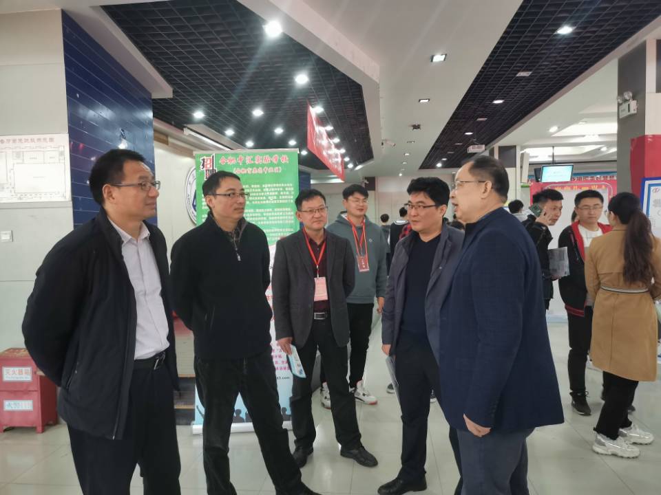 党委书记汪俊武、院长高峰、党委副书记李古州及有关学院毕业班辅导员深入招聘现场与用人单位交流洽谈,了解学生就业意向以及用人单位的需求。