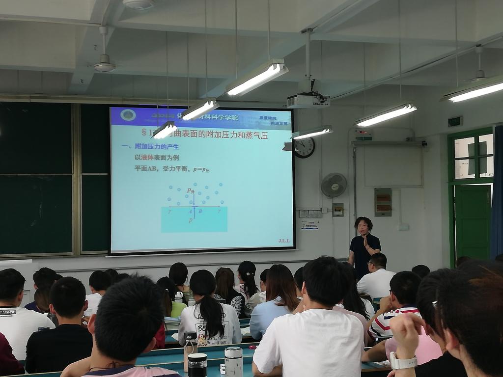 唐丽君)6月2日上午,金莉莉老师在行知楼2010201教室进行本科教学公开课,为2019级材料化学专业的同学讲授《物理化学》中“界面现象”相关内容。学院部分领导、校督导团、学院督导组老师及部分教师参加了此次课程观摩活动。
