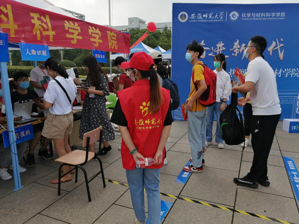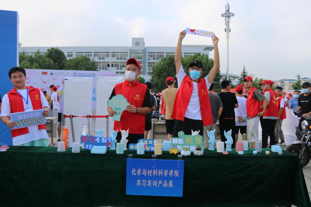 高度重视迎新工作,前期通过召开迎新工作布置会、志愿者培训会、新生导生培训会以及宣传报道工作布置会,细化工作方案,确保迎新工作有计划、有秩序地推进。为体现化材学子积极昂扬的风貌,展示化材学子过硬的专业能力以及运用能力,化材师生发挥特长,将专业能力运用到实际中,精心为2021级新生准备迎新大礼包。学院特别定制的迎新帆布袋中,装有应用化学和材料化学专业学长学姐们精心准备的实训产品,礼包里满载着学院对于新生的诚挚欢迎及衷心祝福。除此之外,学院在迎新处特别设立了实习实训产品展区,有专门的志愿者在现场进行介绍,用行动展示出专业风采,表现出化材学子的专业素养能力以及作为一名师大人的奉献与热情。
