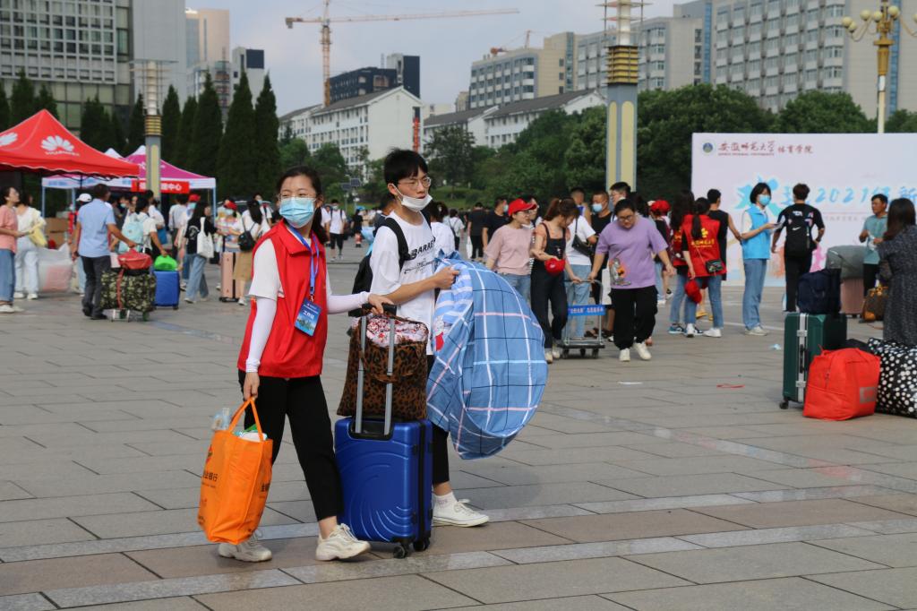 2021级533名本科生和196名研究生踏入校门,开启大学生活。校党委书记胡朝荣、校党委副书记蒋家平,校党委常委、副校长陆林,校党委常委、纪委书记周新发及各职能部门负责人,学院领导班子成员先后来到现场,看望和慰问新生和迎新工作人员。