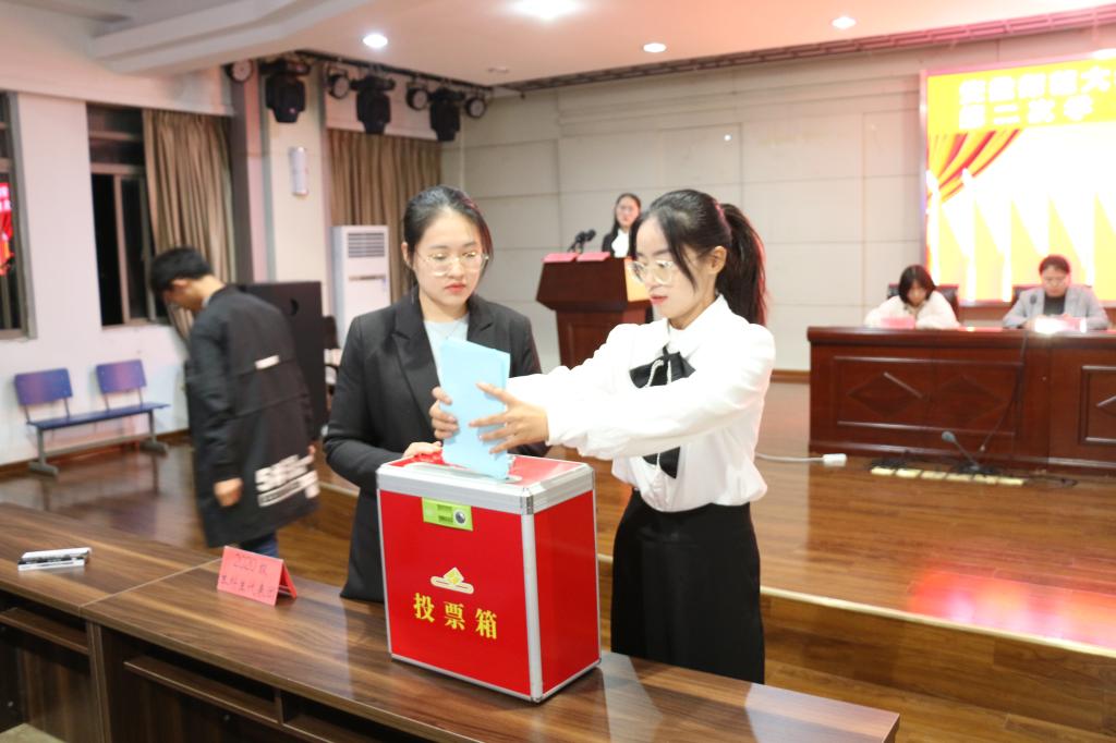 与会代表听审议并通过了校学(研)代会代表选举办法、学院学(研究)生会主席团选举办法、学(研究)生委员会选举办法及学(研)代会总监票人、监票人、总计票人、计票人名单。与会代表通过无记名投票方式选举了安徽师范大学化学与材料学院推荐参加校学(研)代会代表、学(研究)生会主席团成员、学(研究)生委员会成员。大会在热烈的掌声中圆满结束。