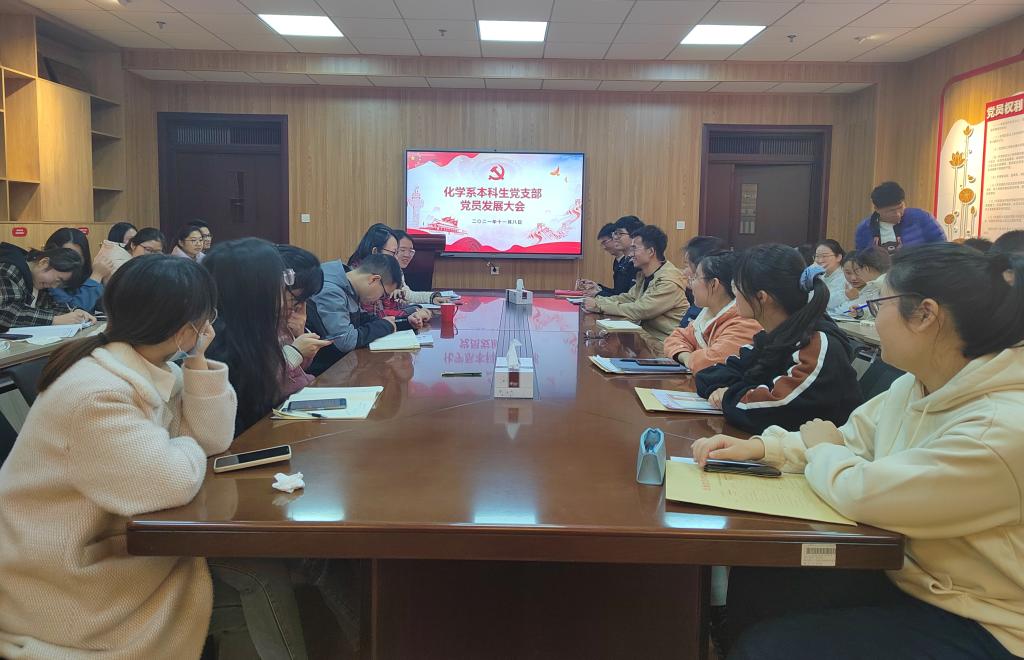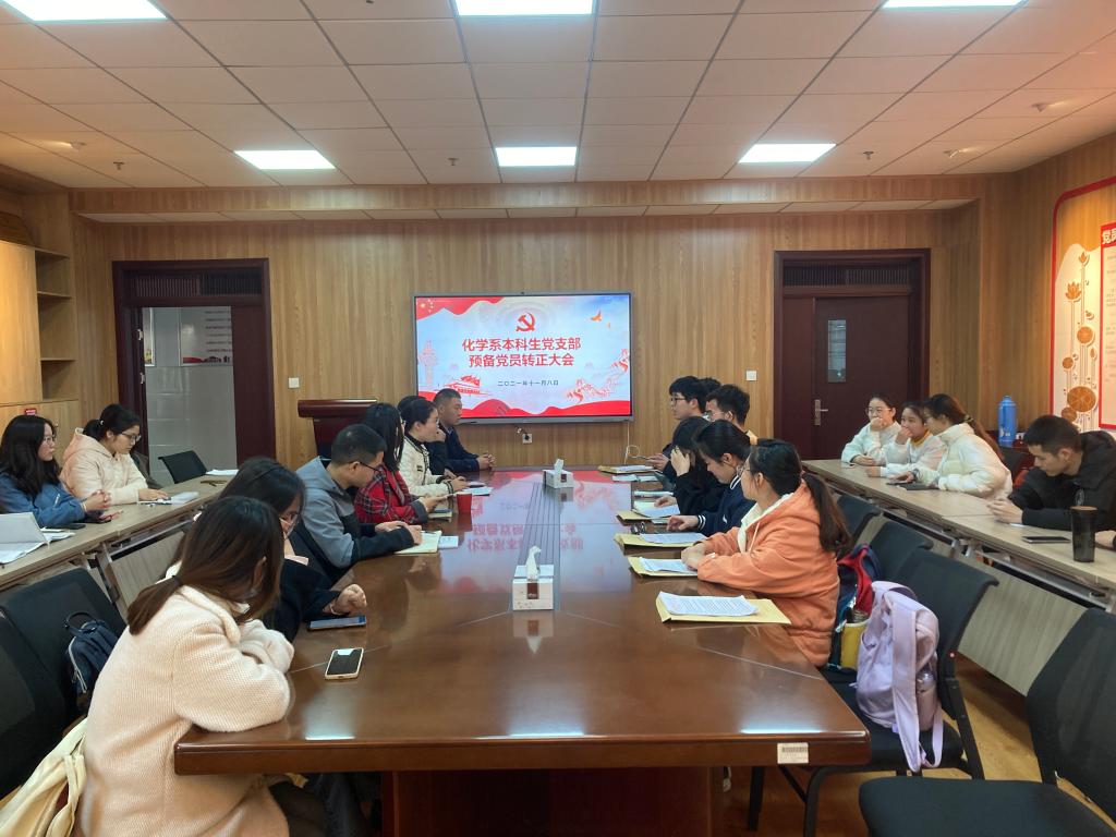 本网讯(化学系本科生党支部 张思雨)11月8日下午,化学系本科生党支部在礼勤楼707室召开了2021年下半年发展党员及党员转正大会。本次大会由化学系本科生党支部书记陈静主持,辅导员程紫丹、王霞及全体党员参加此次会议,卡通色情