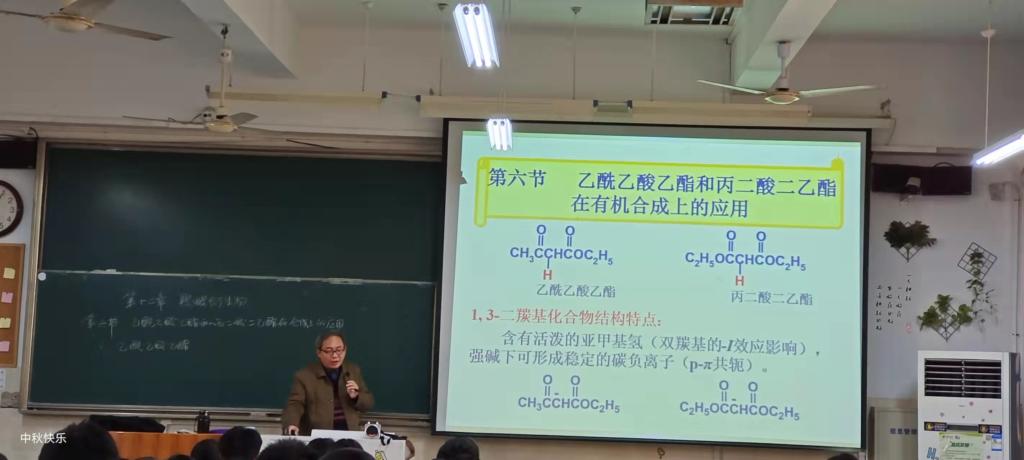 汪芙琳)2021年11月10日上午,孙礼林老师在2010303开展了《有机化学Ⅱ》公开课教学,授课的内容为乙酰乙酸乙酯和丙二酸二乙酯在有机合成上的应用,授课对象为卡通色情